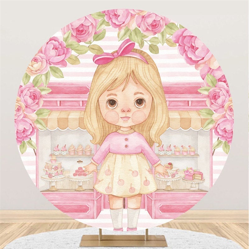 Rosa Mädchen Und Kuchen Speichern Runden Geburtstag Party Hintergrund