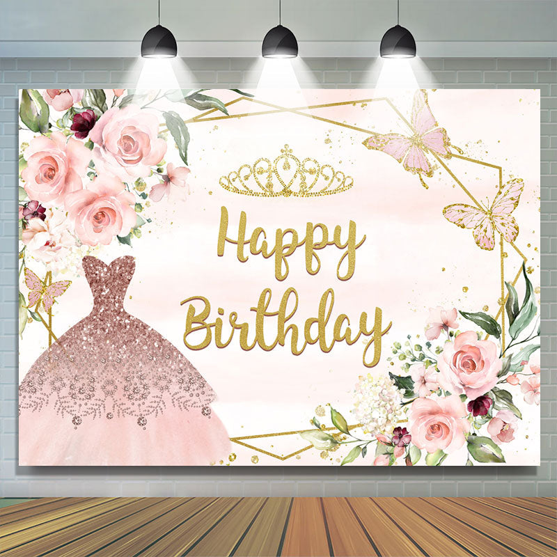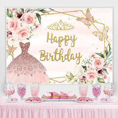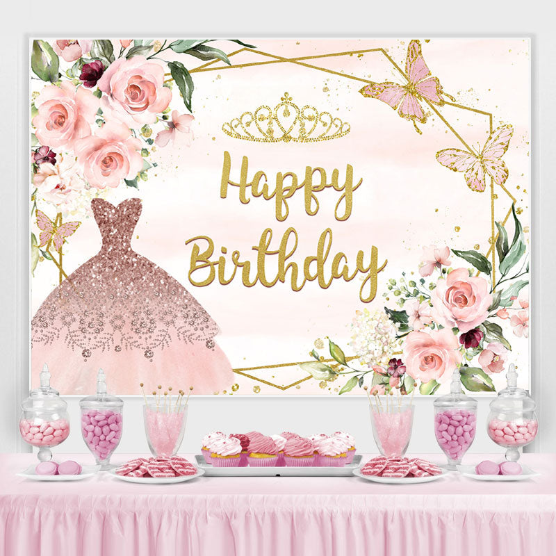 Rosa Prinzessin Kleid Und Schmetterling Geburtstag Hintergrund