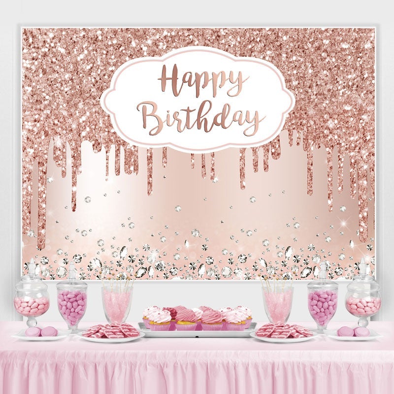 Rosa Rose Golden Geburtstag Party Hintergrund mit Diamanten