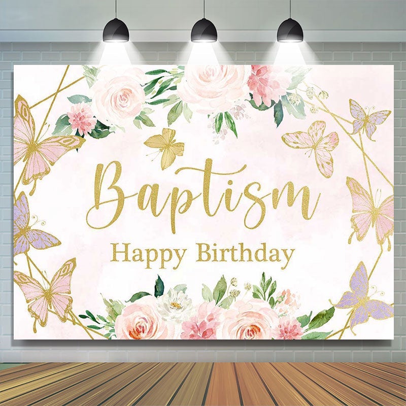Rosa Rose Schmetterling Geburtstag Foto Hintergrund für Mädchen