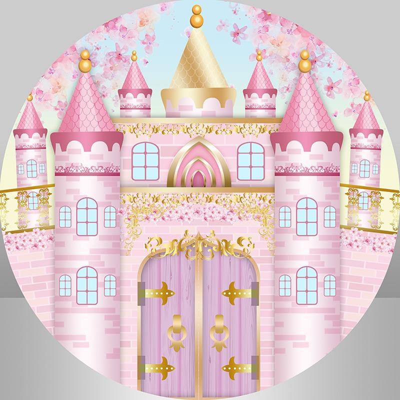 Rosa Schloss Kreis Runden Geburtstag Hintergrund Für Mädchen