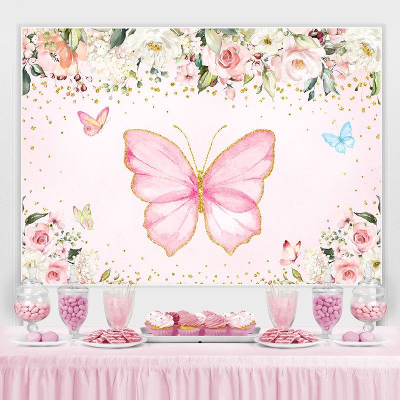 Rosa Schmetterling Und Blumen Baby Dusche Hintergrund Für Mädchen