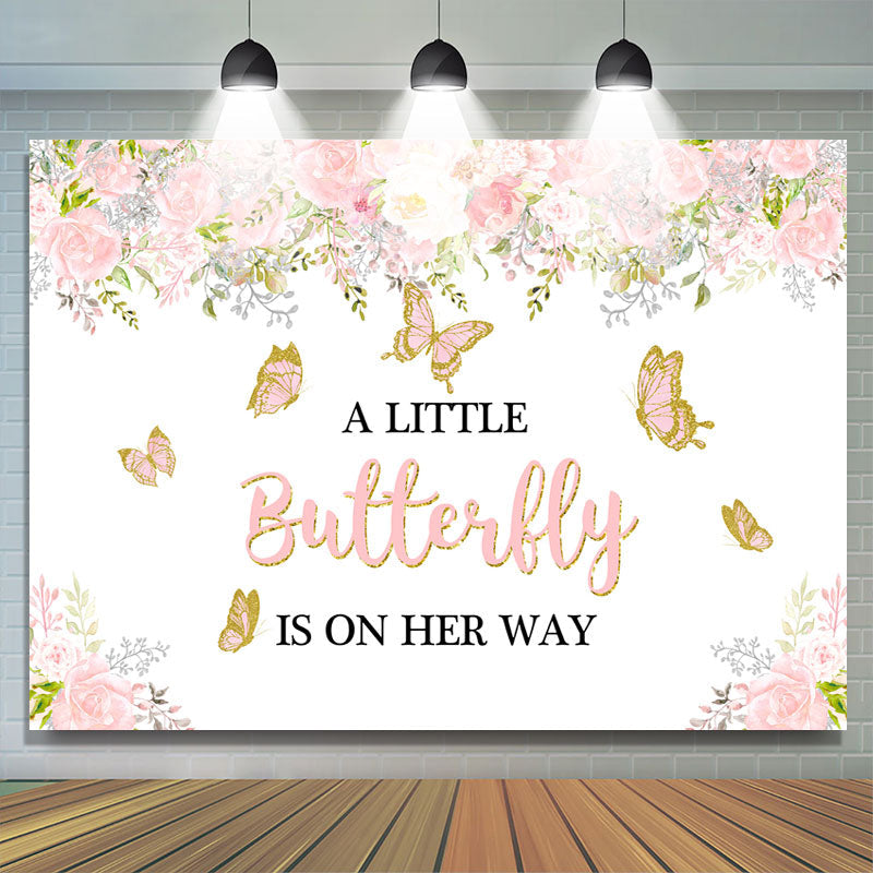 Rosa Schmetterling Und Weiß Blumen Baby Dusche Hintergrund