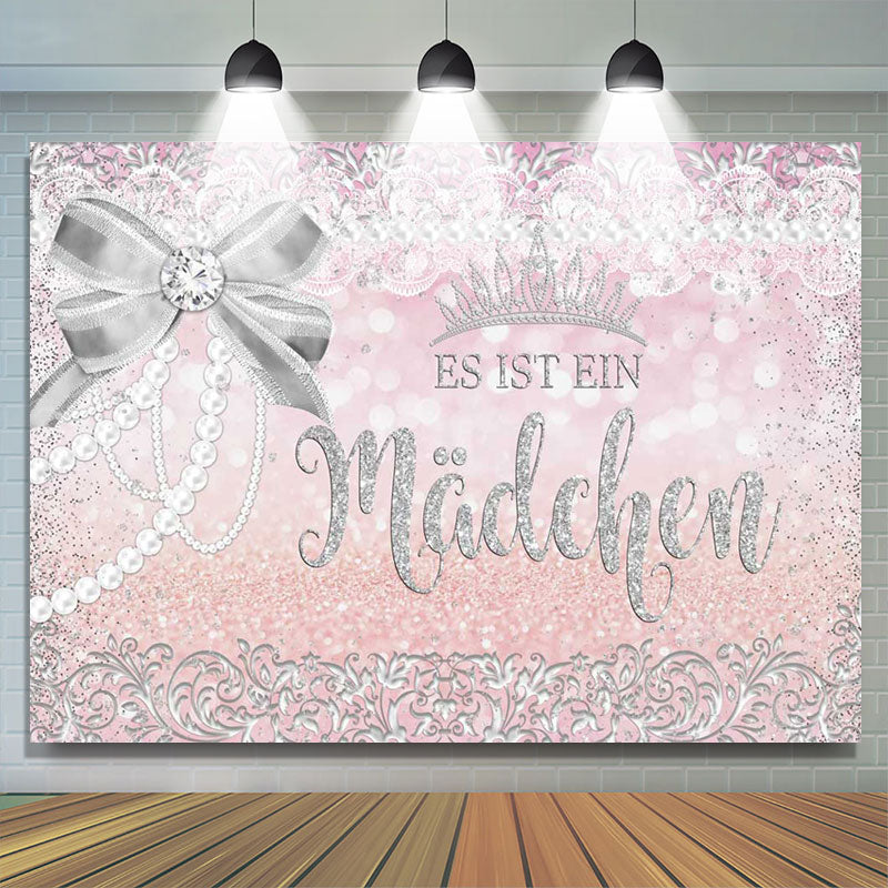 Rosa Silber Bogen Krone Baby Dusche Hintergrund