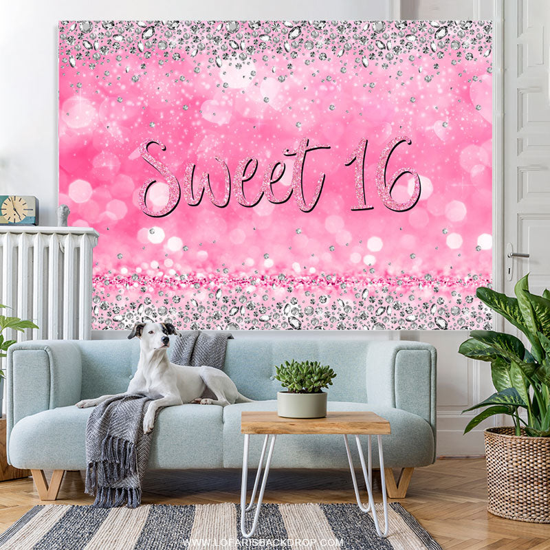 Rosa Silber Diamant funkeln Hintergrund zum 16. Geburtstag