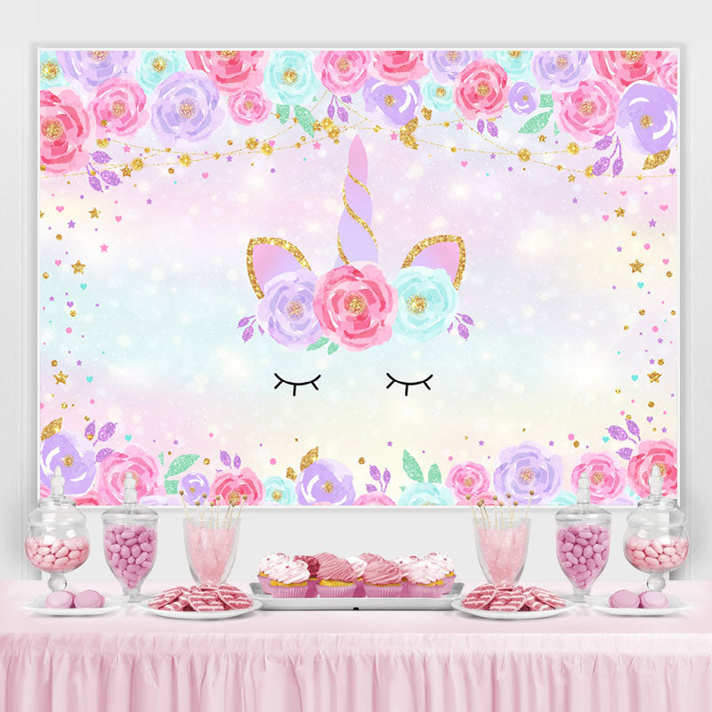 Rosa Und Lila Blumen Einhorn thematisch Funkeln Hintergrund
