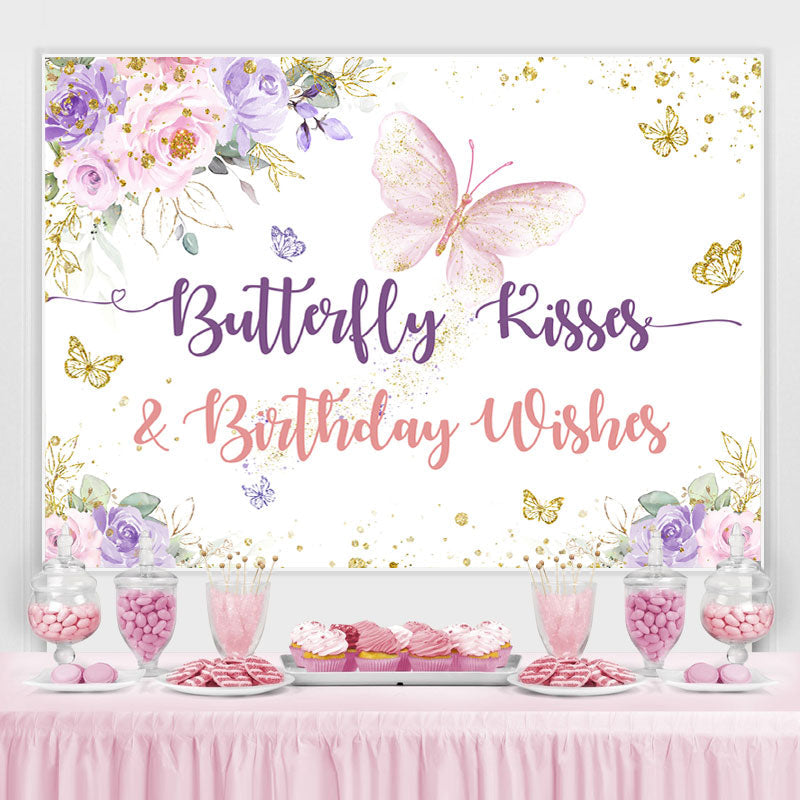 Rosa Und Lila Blumen Und Schmetterling Geburtstag Hintergrund