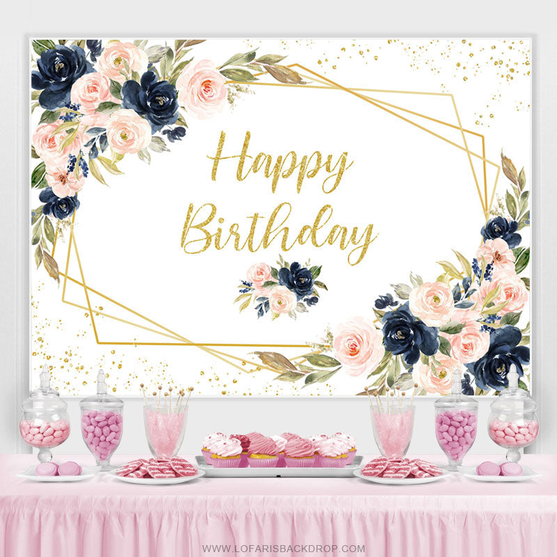 Rosa Und Marine Blau Blumen Gold Funkeln Geburtstag Hintergrund