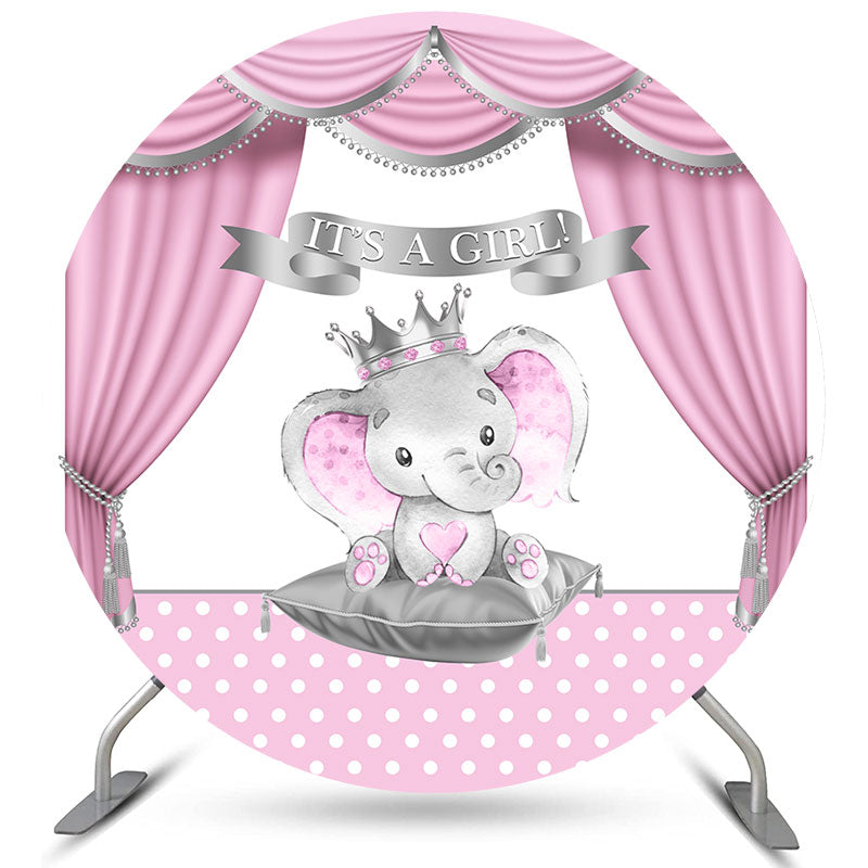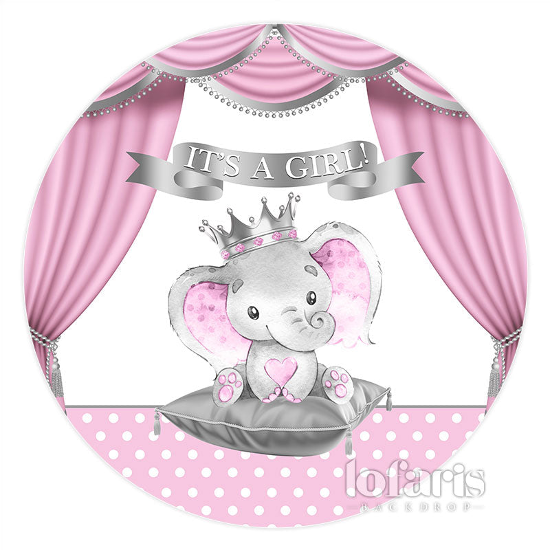 Rosa Vorhang Mit Elefant Baby Mädchen Runden Hintergrund