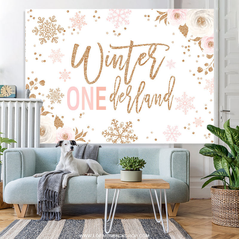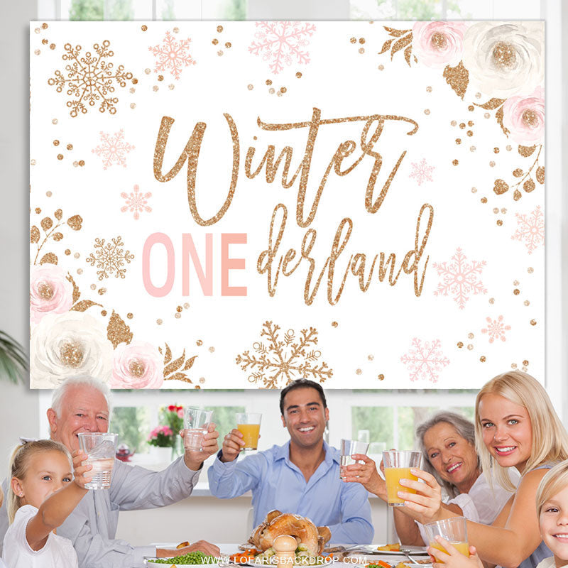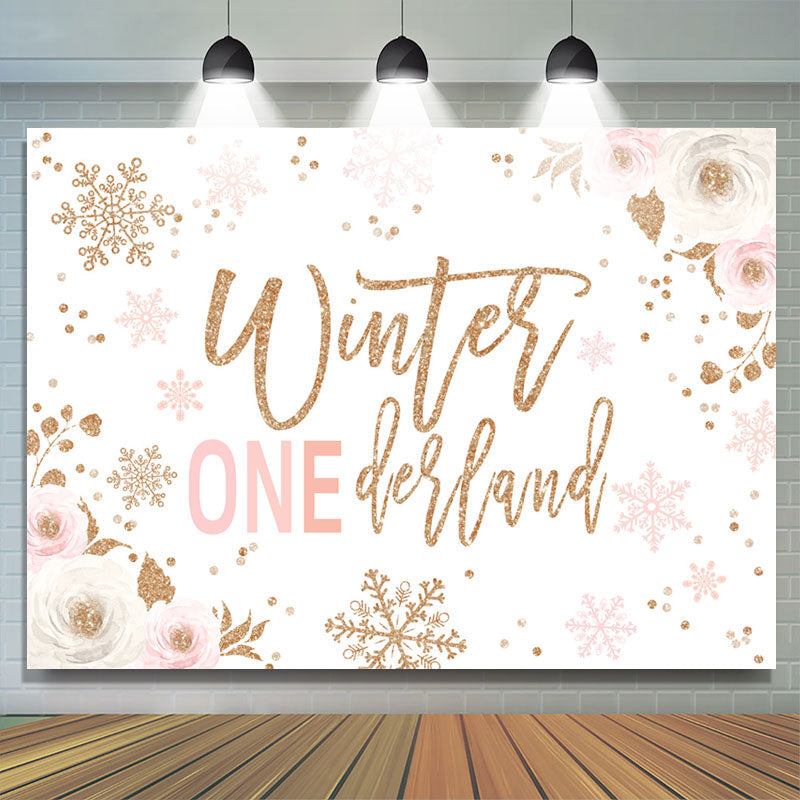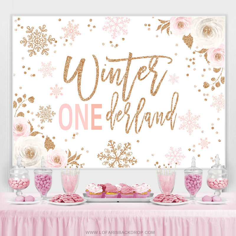 Rosa Weiss Blumen Funkeln Winter Onederland Geburtstag Hintergrund