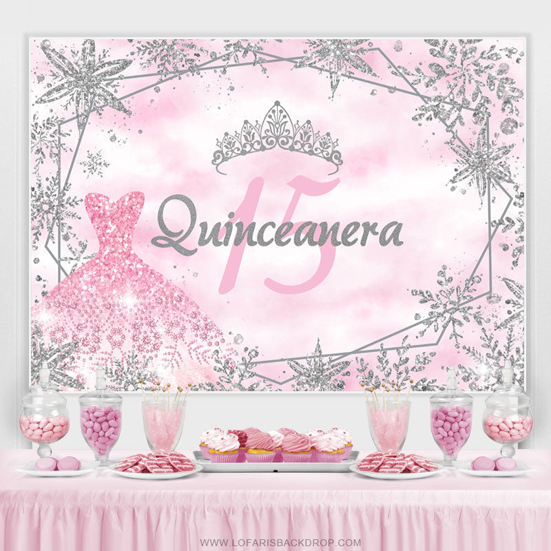 Rosa Winter Schneeflocke Glücklich 15 Geburtstag Hintergrund