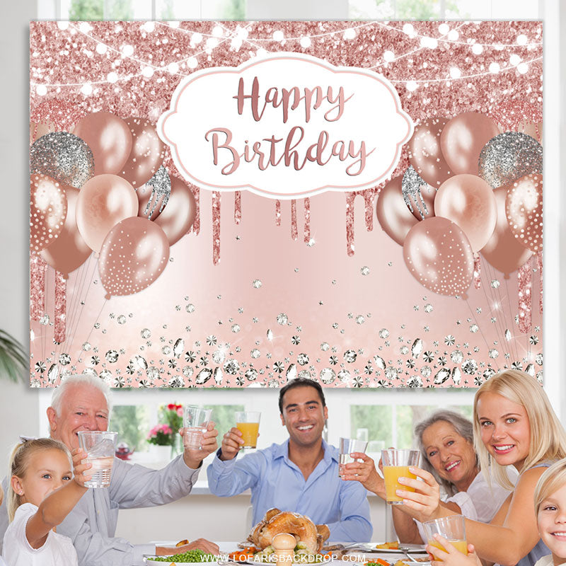 Rose Gold Funkeln Ballon Glücklich Geburtstag Hintergrund