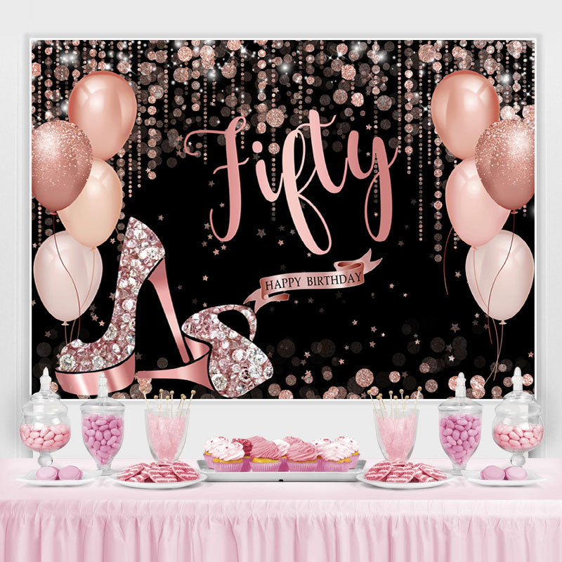 Rose Gold Glücklich 50 Geburtstag Ballon Funkeln Hintergrund