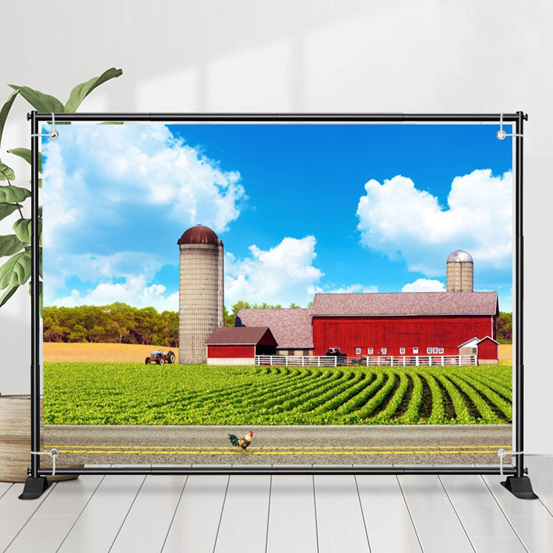 Rot Bauernhof Haus Grün Anlage Sonnig Himmel Frühling Hintergrund