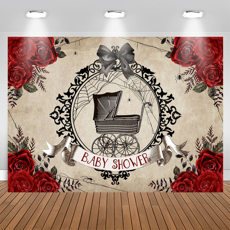Rot Rose Schwarz Kinderwagen Schleife Babydusche Hintergrund