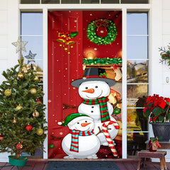 Rot Schneemann Schneeflocken Fröhlich Weihnachten Tür Abdeckung