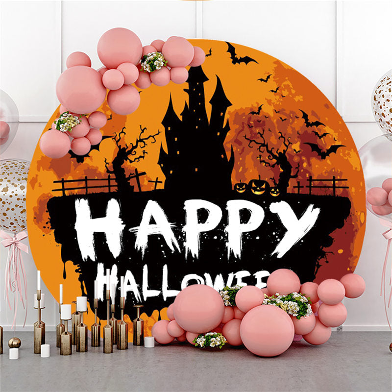 Runden Lustig Kürbis Schloss Stamm Glücklich Halloween Hintergrund