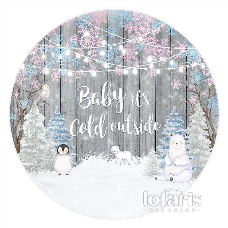 Runden Schneebedeckt Weiß Pinguin Weihnachten Babydusche Hintergrund