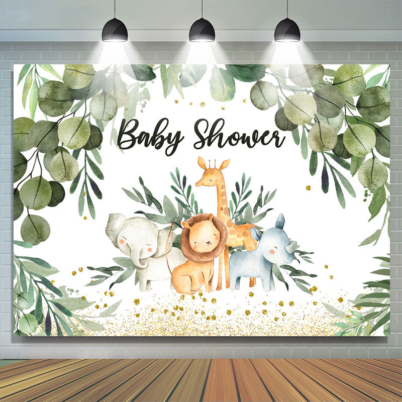 Safari Grün Dschungel Blätter Niedlich Babydusche Hintergrund