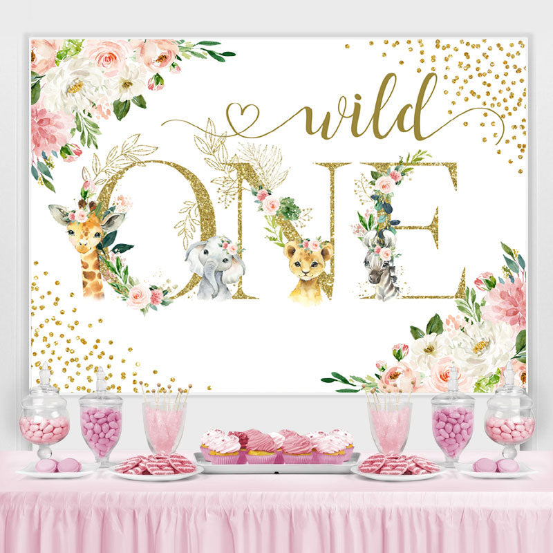 Safari Und Blumen Funkeln Wild Eins Geburtstag Hintergrund