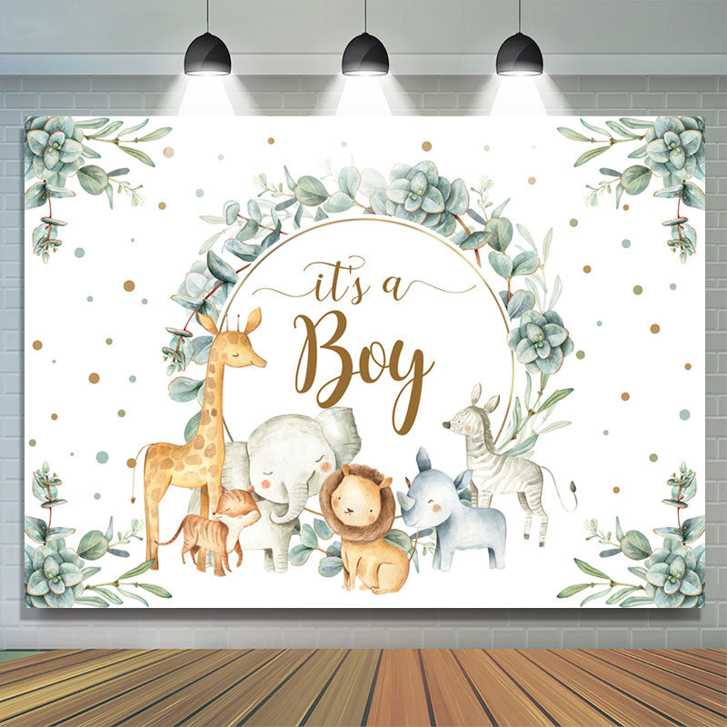 Safaris Grün Blätter Es ist A Junge Babydusche Hintergrund