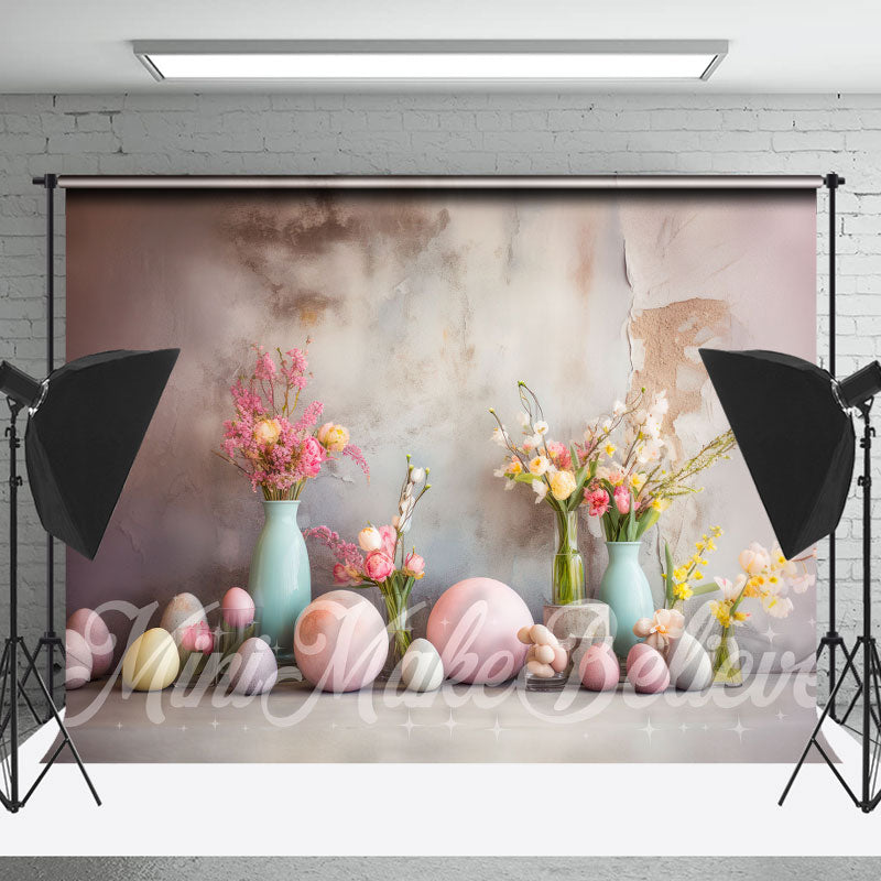 Schäbig Zement Wand Blumen Eier Foto Ostern Hintergrund