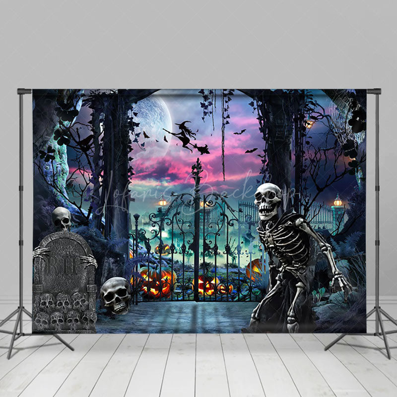 Schädel Grab Lila Stimmung Mond Halloween Hintergrund