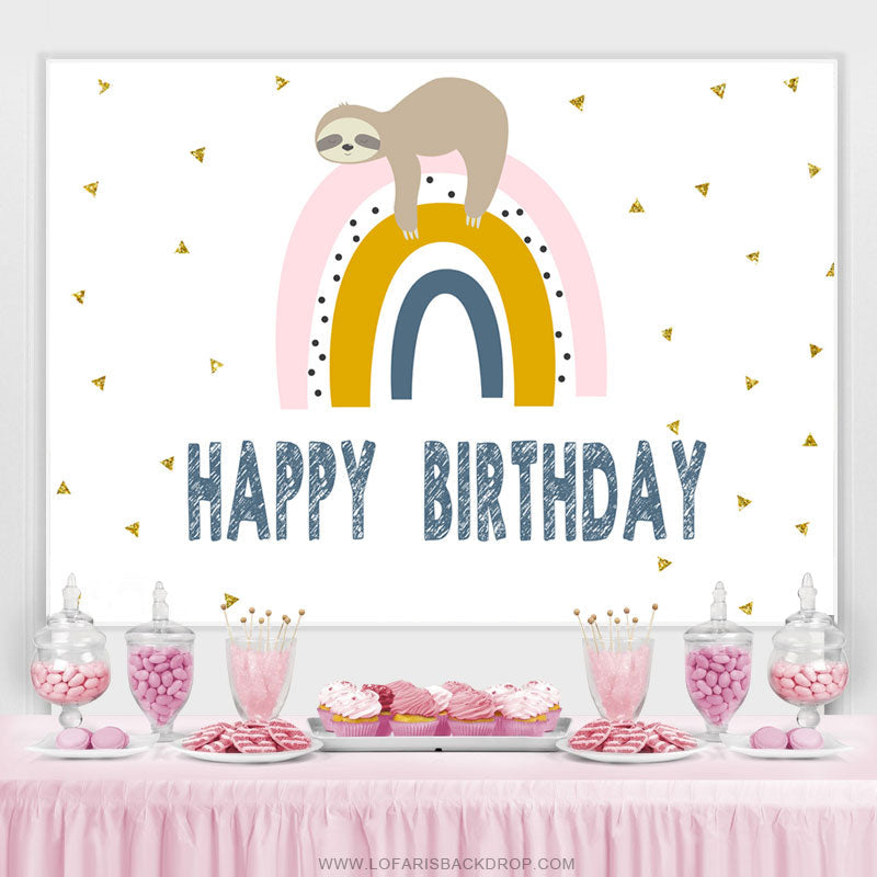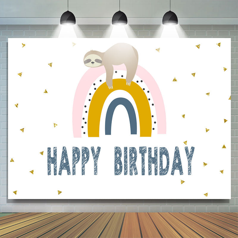 Schläfrig Faultier Und Regenbogen Glücklich Kinder Geburtstag Hintergrund