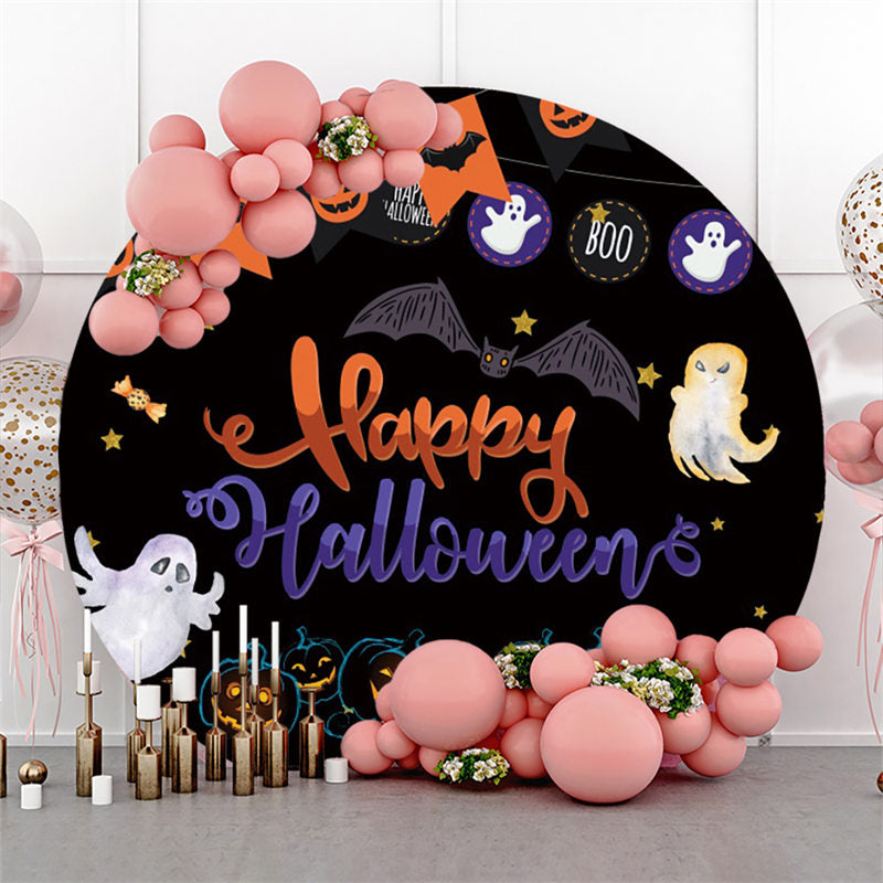 Schläger Kürbis Und Geist Glücklich Halloween Kreis Hintergrund