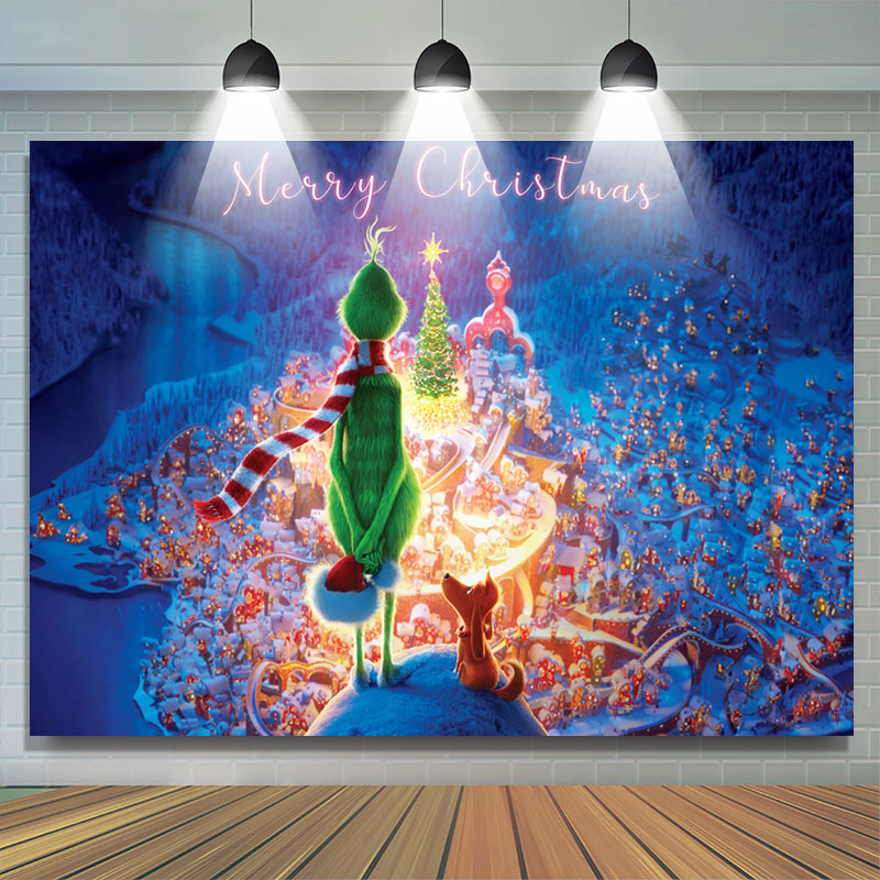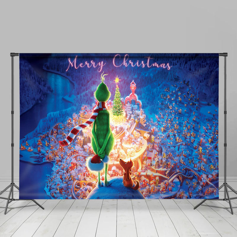 Schneebedeckt Stadt Grün Monster Fröhlich Weihnachten Hintergrund