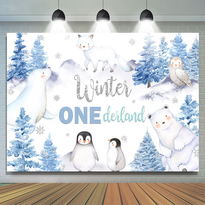 Schneebedeckt Wald Mit Weiss Tier Glücklich Geburtstag Hintergrund