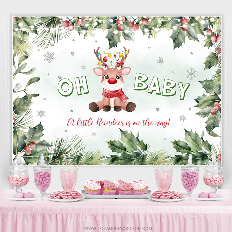 Schneebedeckt Winter Rentier Weihnachten Babydusche Hintergrund
