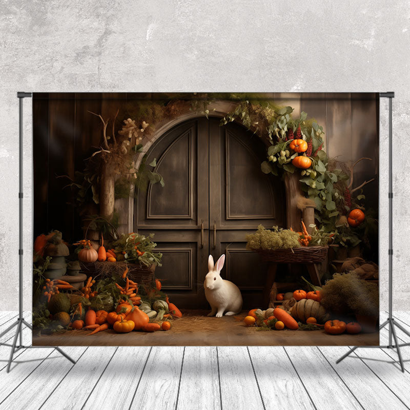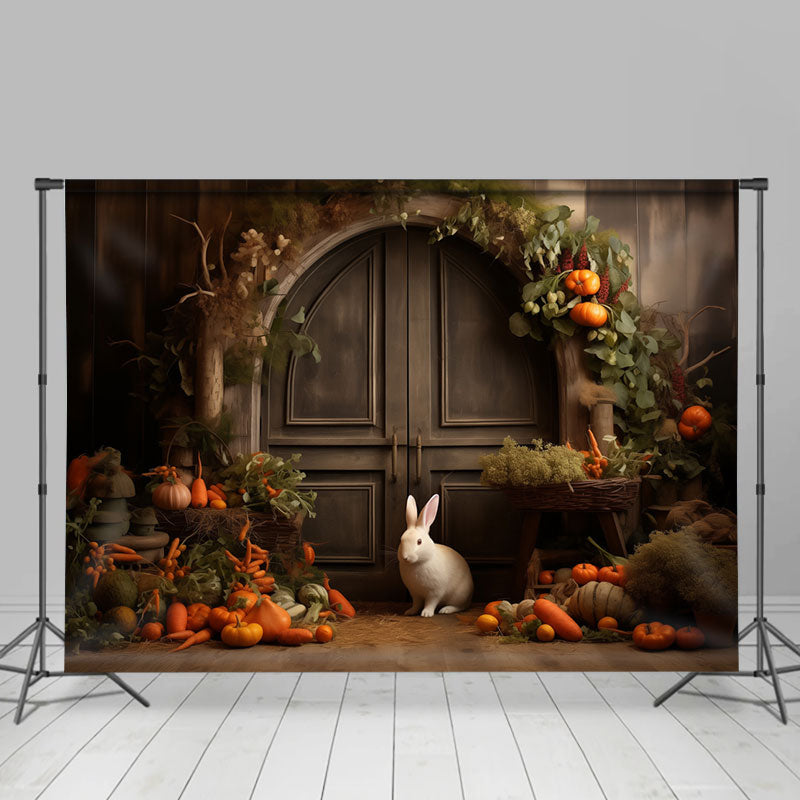 Schön Kaninchen Karotte Jahrgang Tür Ostern Hintergrund