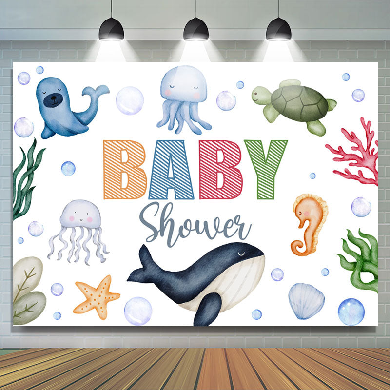 Schön Unterseeisch Kreaturen Weiss Babydusche Hintergrund