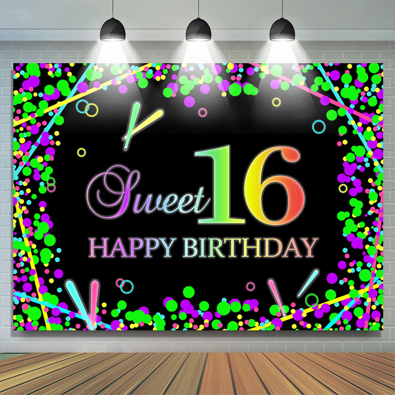 Schwarz Farbe Süss 16 Glücklich Geburtstag Hintergrund Für Party