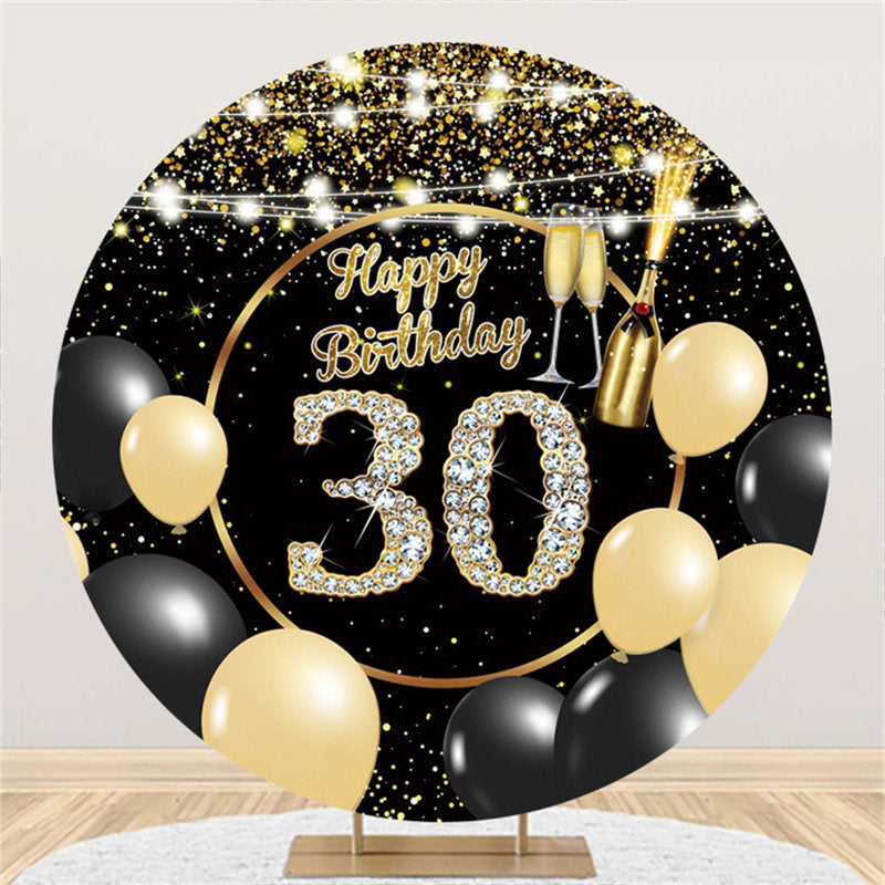 Schwarz Gold Funkeln Luftballons Runden 30 Geburtstag Hintergrund