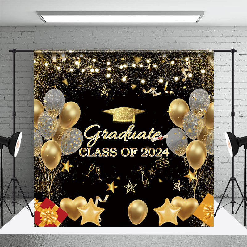 Schwarz Gold Luftballons Geschenke Klasse 2024 Grad Hintergrund