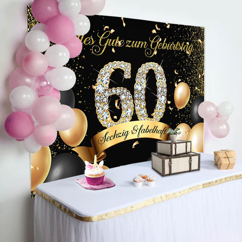 Schwarz Golden Ballon Diamant 60 Geburtstag Hintergrund