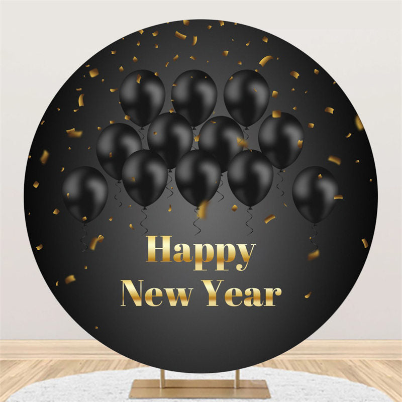Schwarz Luftballons Runden Gold Glücklich Neu Jahr Hintergründe