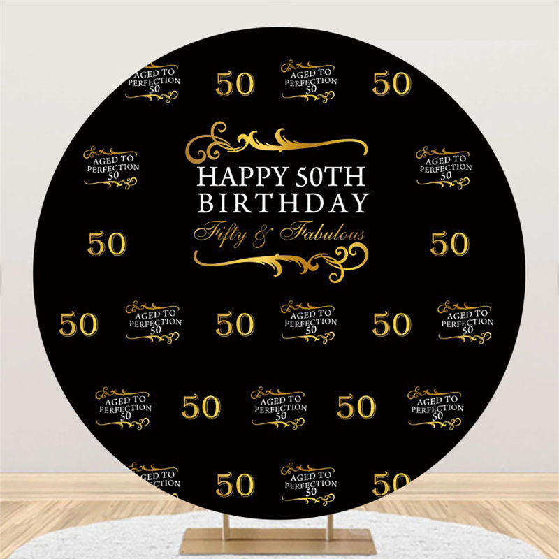 Schwarz Und Gold Glücklich 50 Geburtstag Runden Hintergrund