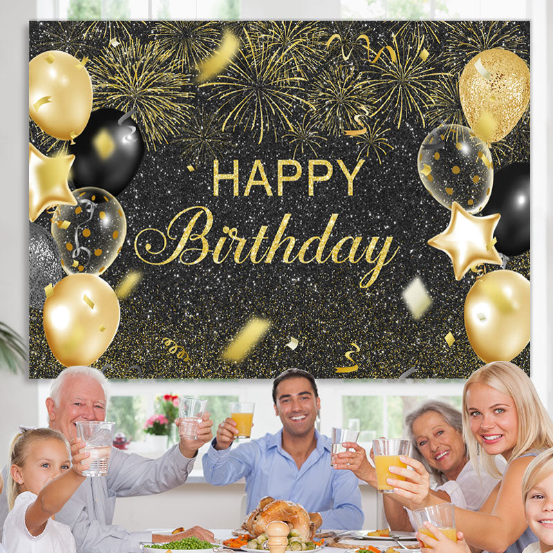 Schwarz Und Golden Ballon Funkeln Glücklich Geburtstag Hintergrund