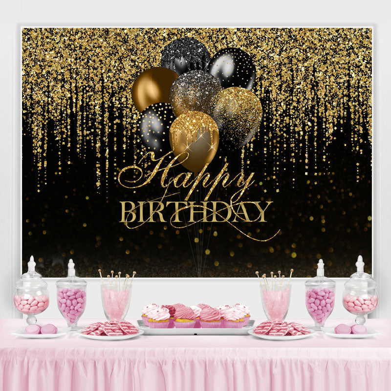 Schwarz Und Golden Bokeh Ballon Glücklich Geburtstag Hintergrund