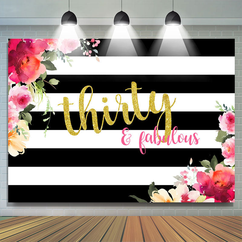 Schwarz Und Weiss Streifen Blumen 30 Geburtstag Hintergrund