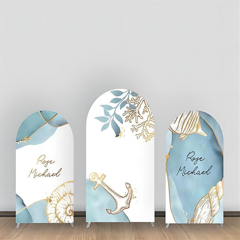 See Blau Gold Linie Blätter Haken Bogen Hintergrund Bausatz