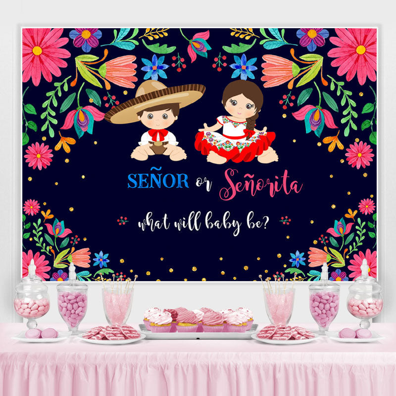 Senor Oder Senorita Und Blumen Baby Dusche Hintergrund