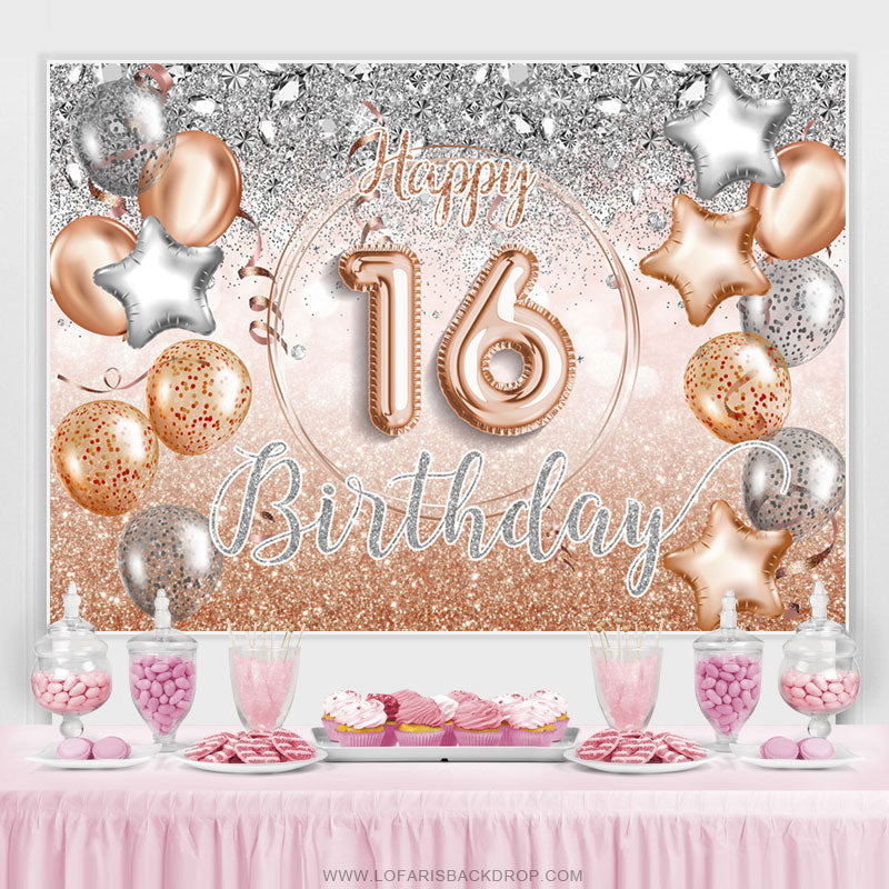 Silber Rose Gold Ballon Glücklich 16 Geburtstag Hintergrund