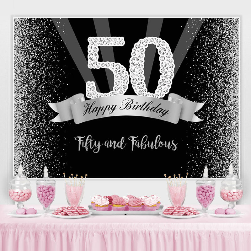 Silber Und Schwarz Funkeln Glücklich 50 Geburtstag Hintergrund