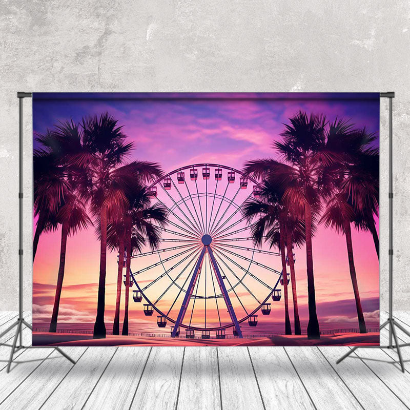 Sonnenuntergang Himmel Strand Bäume Ferris Rad Foto Hintergrund