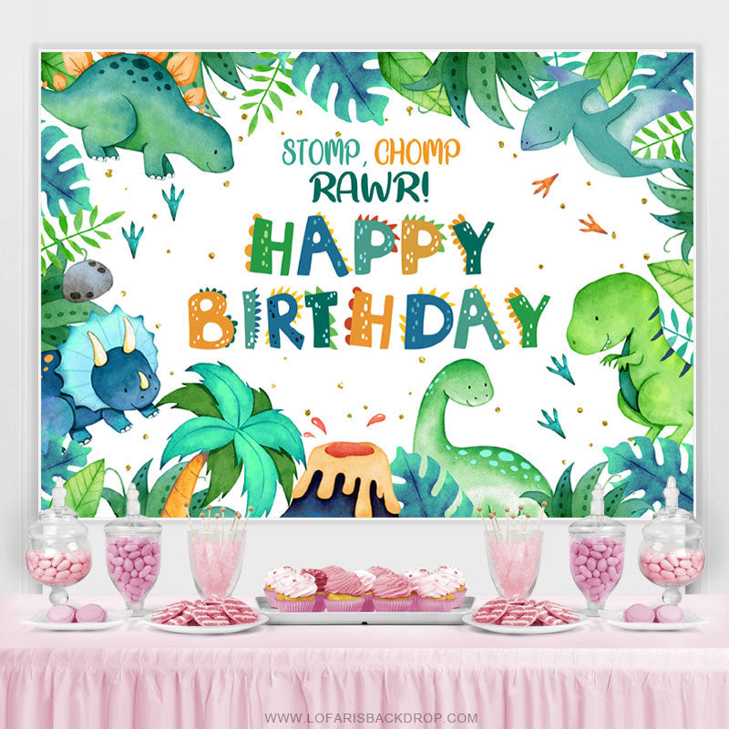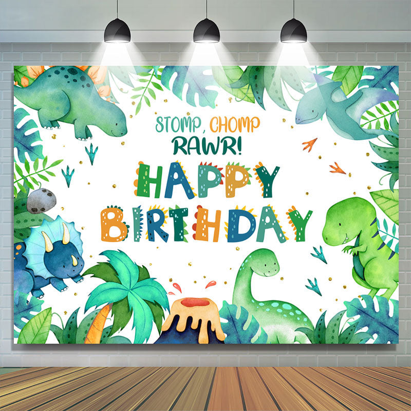 Stampfen Chomp Rawr Grün Blätter Geburtstag Party Hintergrund