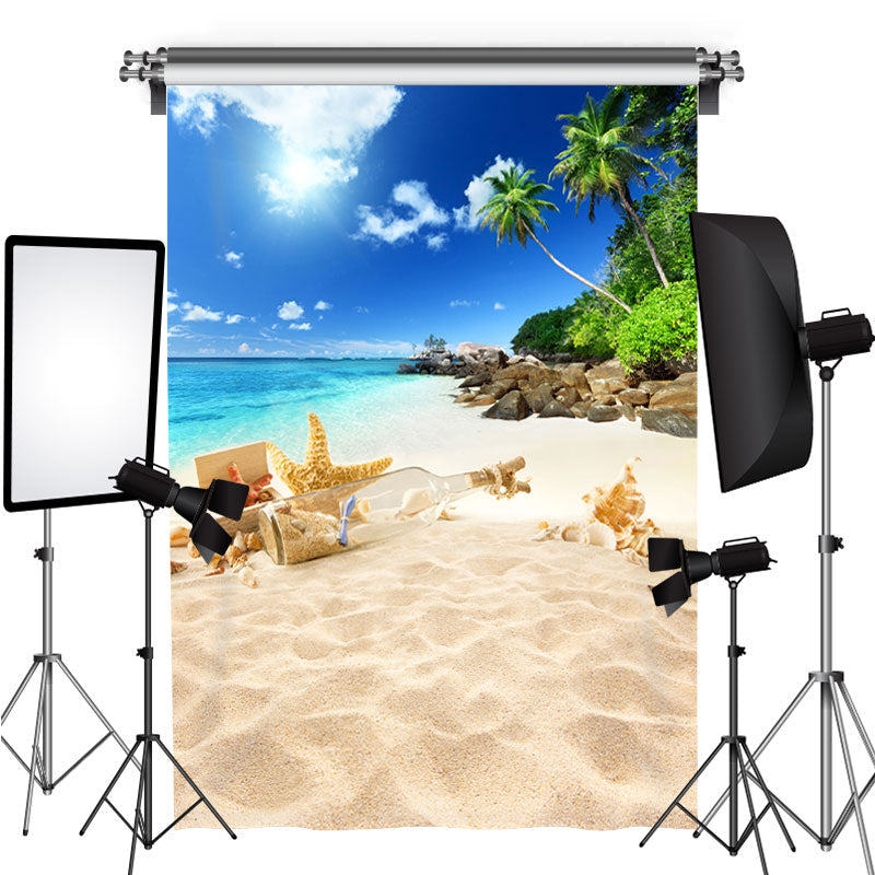 Strand Mit Sonnig Meer Und Kokosnuss Baum Sommer Hintergrund